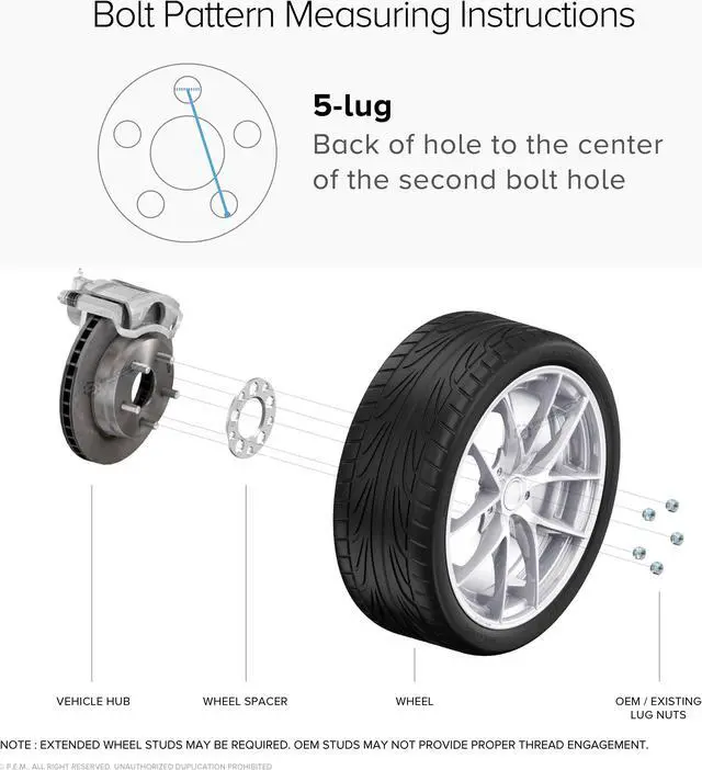 - [VERIFY FITMENT] Even if a vehicle is listed as being compatible, buyers still need to check: 1) You have 3mm of space between your fender and your wheel/tire; 2) Your studs/bolts are the correct length to ensure safe nut/bolt thread engagement; 3) For proper installation you may need aftermarket Extended Lug Bolts or Extended Wheel Studs (NOTE: NOT INCLUDED with this listing); 4) Wheels will center around vehicle's hub lip as long as it is longer than 3mm.