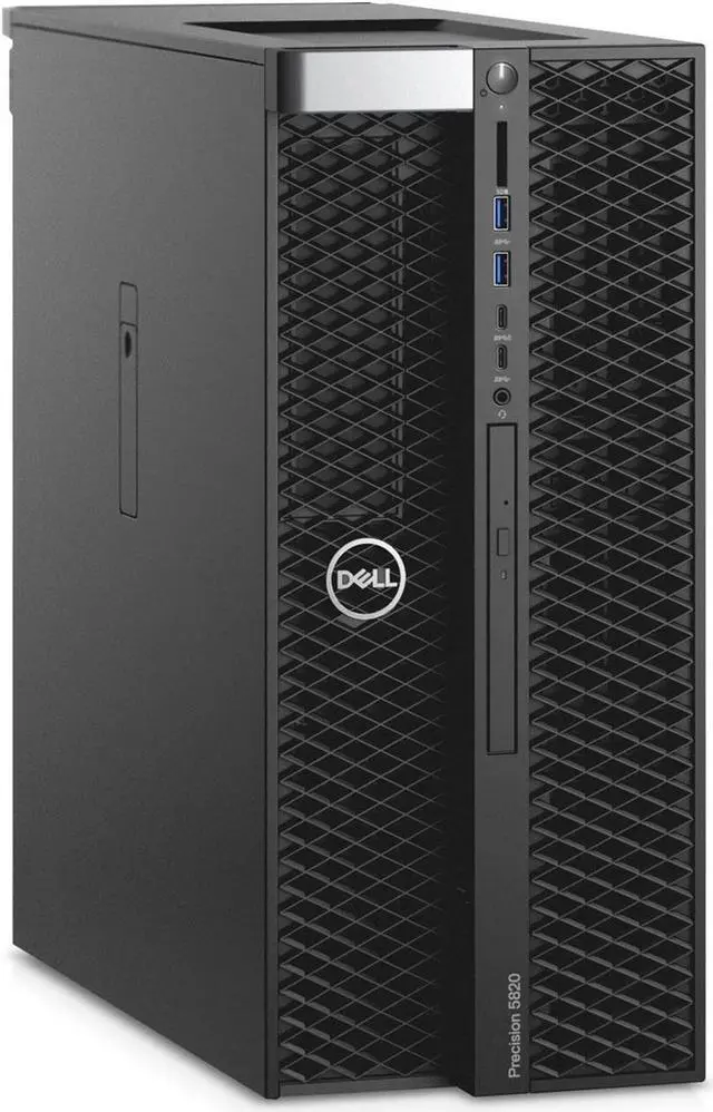 The Dell Precision T5820 is a powerful desktop computer designed for business use. It features an Intel Xeon W-2145 processor, 128GB of DDR4 RAM, and a 512GB PCIe NVMe solid state drive. With a dedicated Nvidia Quadro RTX4000 graphics card, it offers excellent graphics performance. The system runs on Microsoft Windows 11 Professional and comes in a full tower form factor with a sleek black design. It is Energy Star compliant and includes 8 USB 3.0 ports and 2 USB-C ports.