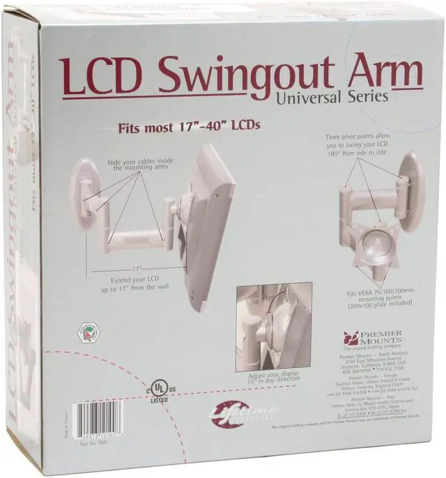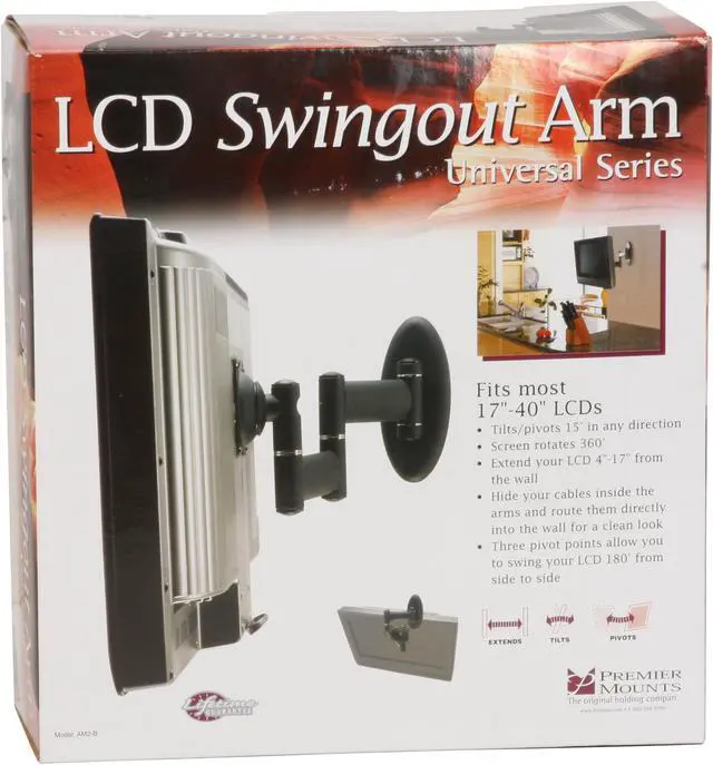 Recommended for 18"-37" LCD displays, this full-articulation swing-out arm can be pulled out from the wall and offers significant tilt and pivot.