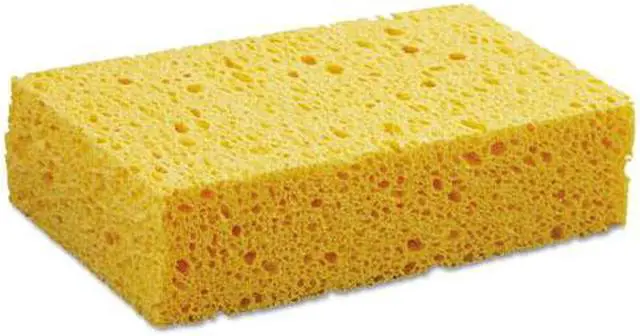 Ultra-absorbent, durable cellulose sponge for all your cleaning needs. Soaks up spills and wipes surface clean. Convenient and gentle cleaning tool for kitchens, bathrooms, offices, and industrial settings. Makes cleaning faster and easier by carrying cleaning solutions and water to the work surface. Medium. Sponge Type: Cleaning; Material(s): Cellulose; Shape: Rectangular; Width: 3.67".