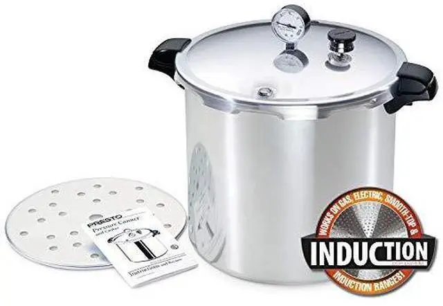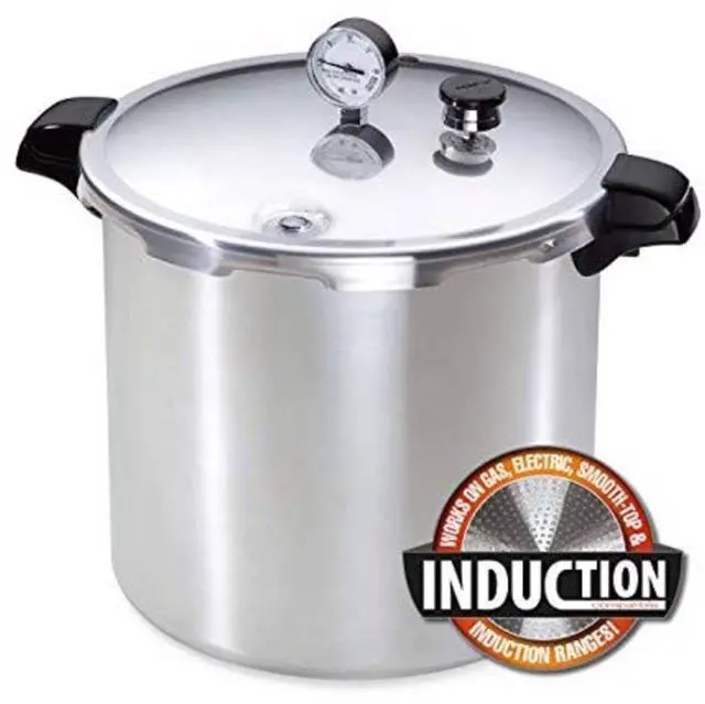 Deluxe pressure gauge registers the complete range of processing pressures, which is especially important at higher altitudes. Works on induction, gas, electric, and smooth-top ranges. Constructed of heavy-gauge polished aluminum with a stainless steel-clad base.