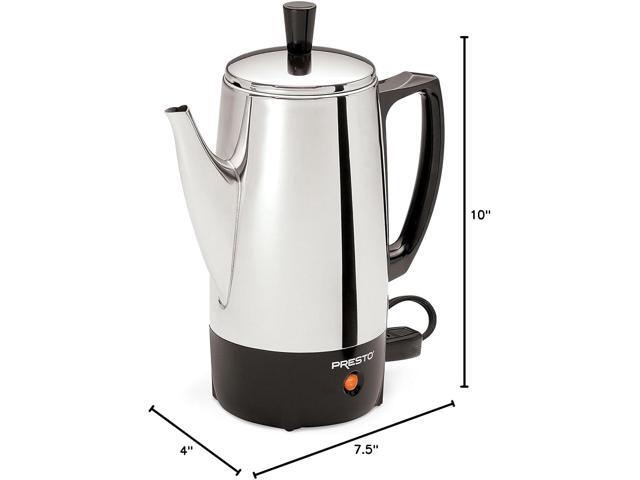 - Measures approximately 7-1/2 by 4 by 10 inches; 1-year limited warranty. Please note: Coffee percolator will brew six -5 ounce cups (standard coffee cup)