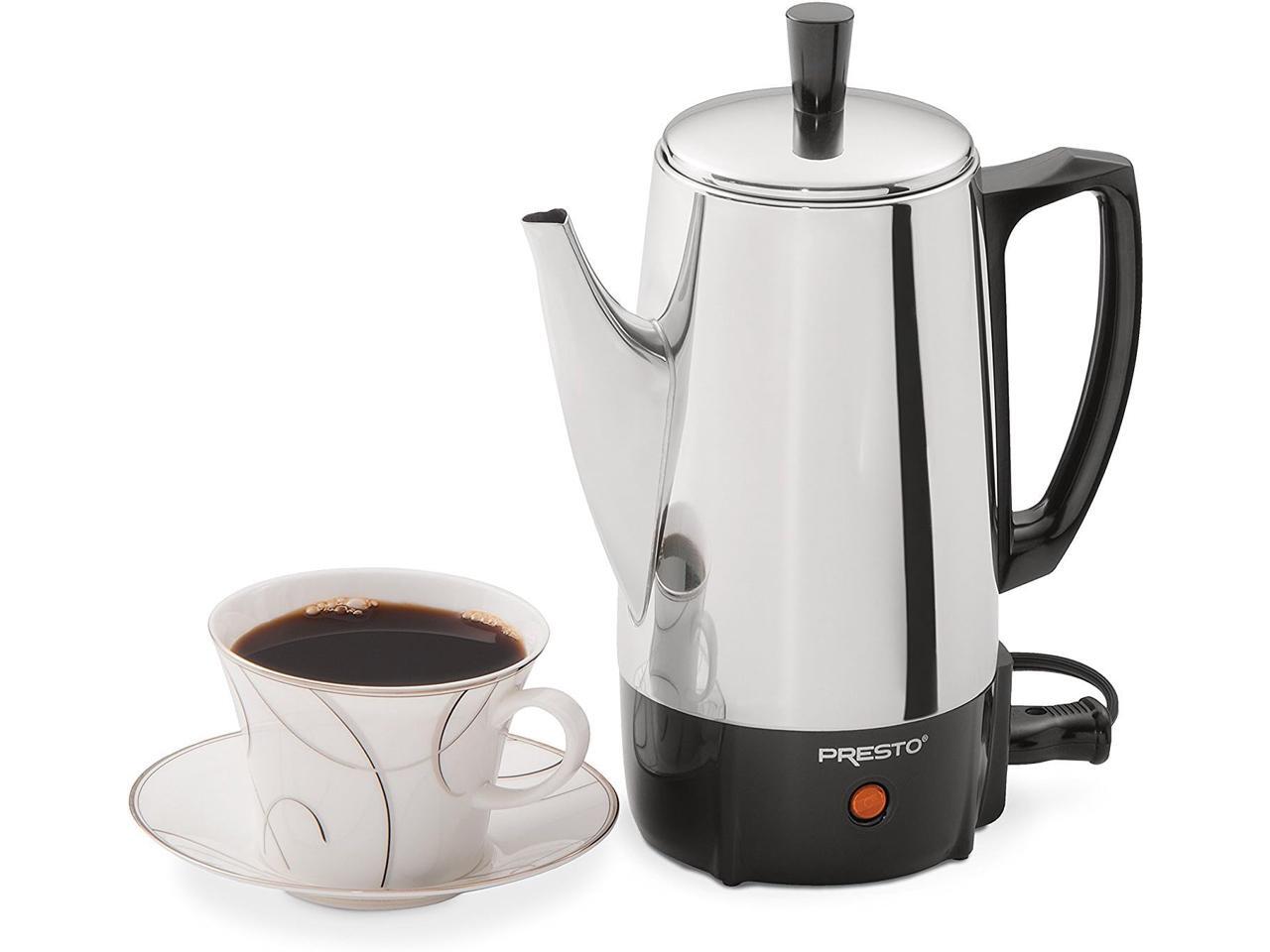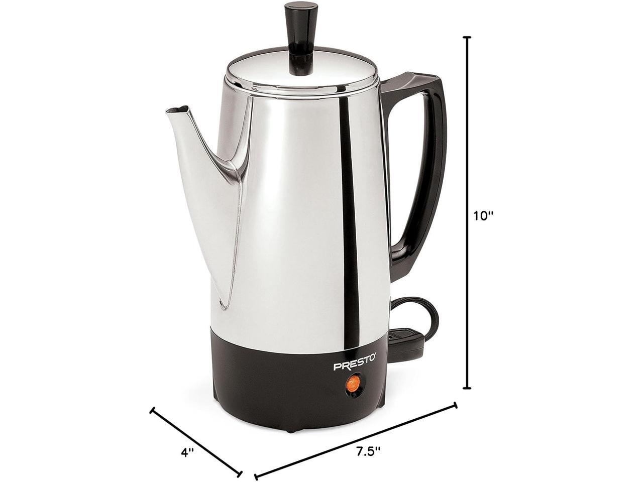 - 500-watt classic stainless-steel percolator brews from 2 to 6 cups of coffee