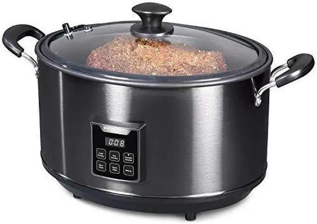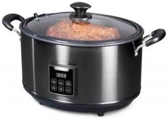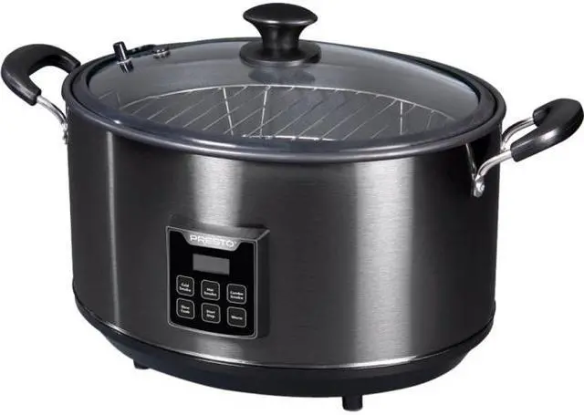 Doubles as a slow cooker. Removable nonstick pot is dishwasher safe.