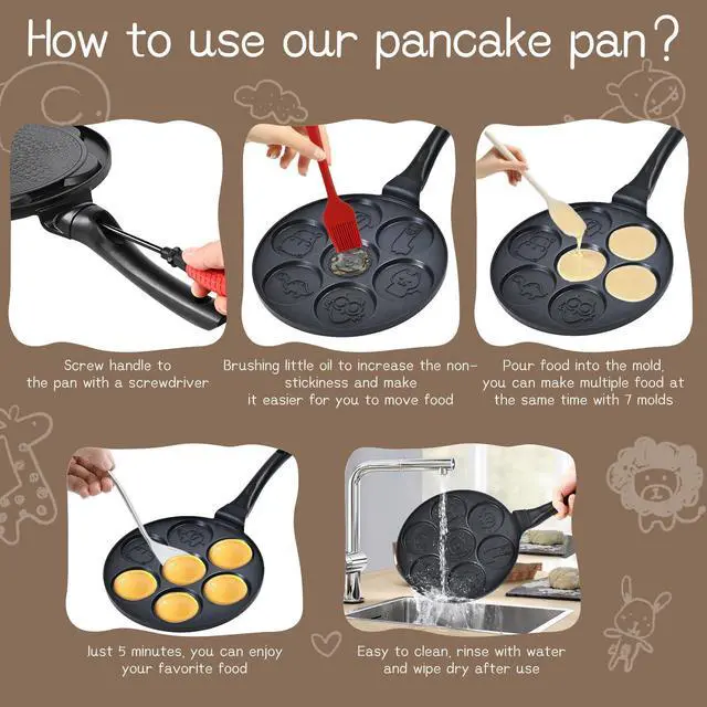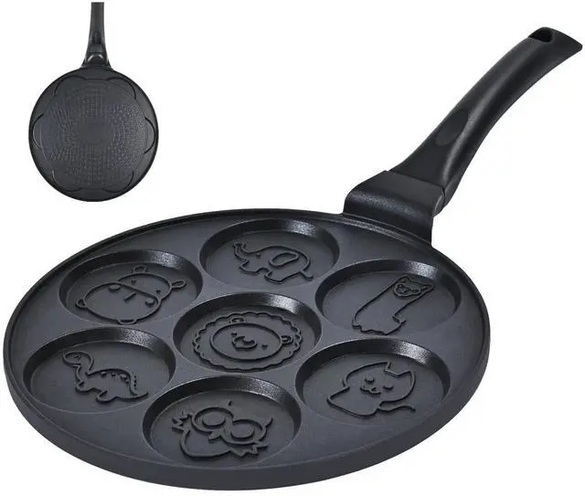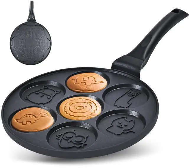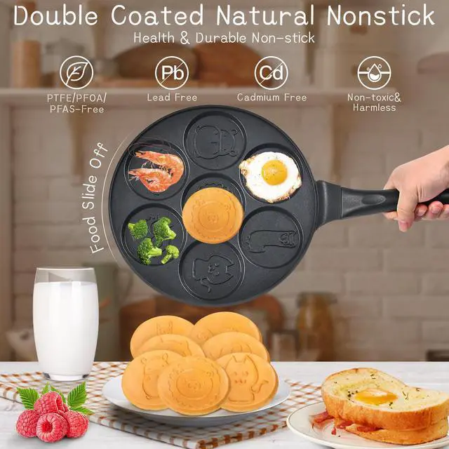 Pancake Maker Egg Frying Pan Suitable for All Stovetops & Induction Cooker, 10.5 Inch Animal Pancake Pan, 7 Molds Pancake Maker with PFOA Free Coating