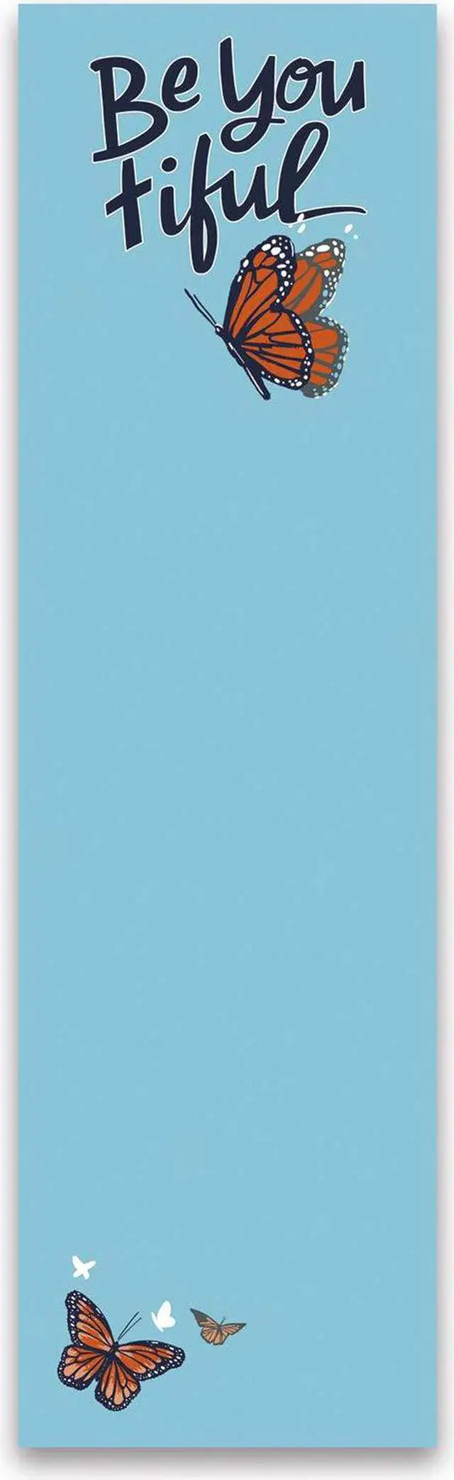 Includes 60 pages and strong magnet on back for easy hanging on refrigerator or other magnetic surface. Great for gifting! Made in USA A magnetic list notepad featuring a "Be You Tiful" sentiment and butterfly design.