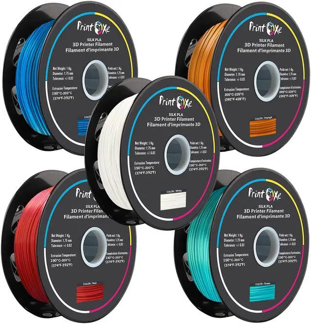 5 Packs of Different Colours, Each Weight 1 Kilogram (2.2 LBs) NET on Spool. Colours Included in the Package: Blue, Orange, White, Red, & Green. The Product is Vacuumed Sealed With Desiccant, Inside The Boxes, For Best Protection From Humidity & Moisture.
