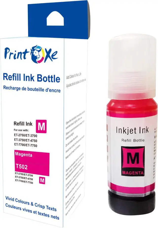Complete Set of Refill Bottles T502 for Expression Printers Black (Pigment Ink) and Cyan, Magenta, Yellow (Dye Ink) High Page Yield and Crispy Printing