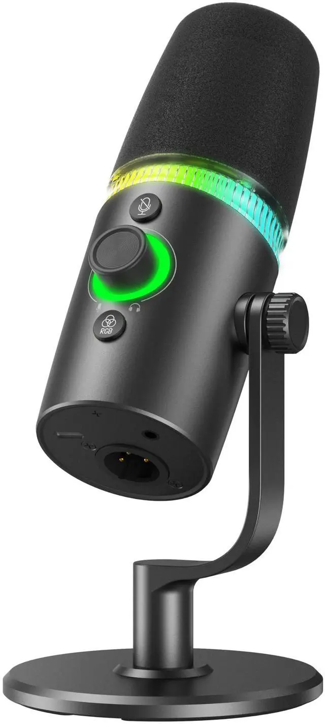 USB/XLR Dynamic Microphone Podcast & Gaming Microphone for PC, Vocal Mic with RGB Lighting, Tap-to-Mute, Gain Control & Headphone Monitoring for YouTube Streaming