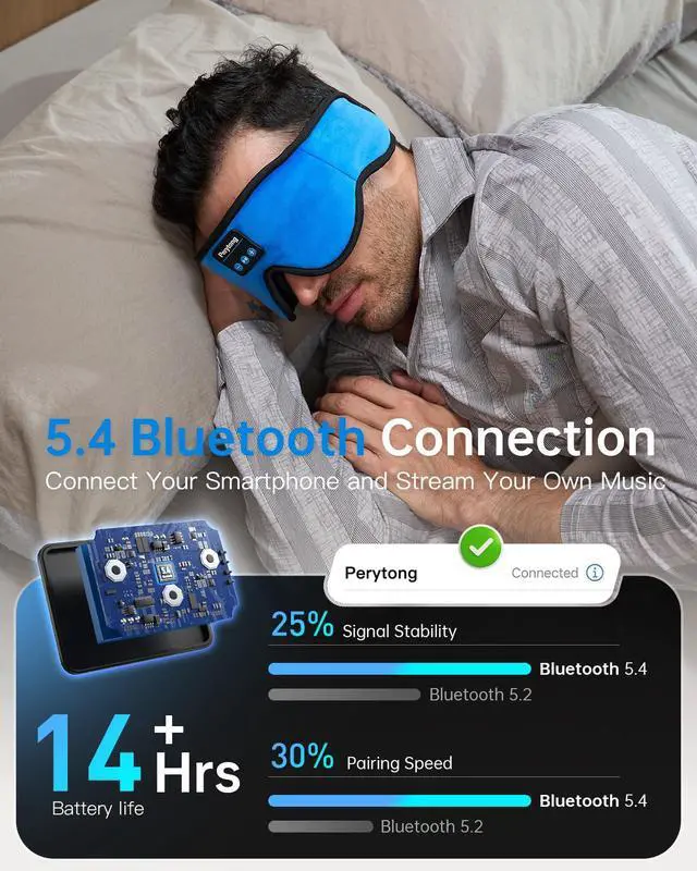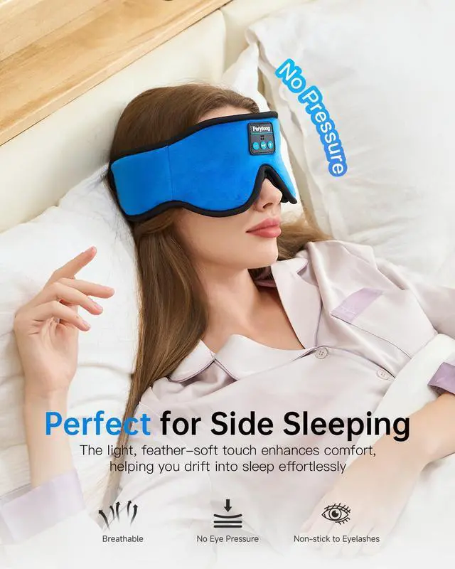 Sleep Mask with Bluetooth 5.4 Headphones, Wireless Music Sleep Eye Mask for Side Sleepers, 3D Contoured Comfort & Built-in HD Stereo Earphones, Blackout for Travel (Bright Blue)