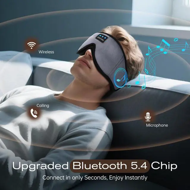 ZHENYEMEI Bluetooth Sleep Mask Headphones use the latest Bluetooth 5.4 chip, which has fast pairing speed and low power consumption. Bluetooth Sleep Headphones can be paired with any Bluetooth-enabled device within 45 feet and are compatible with most devices.