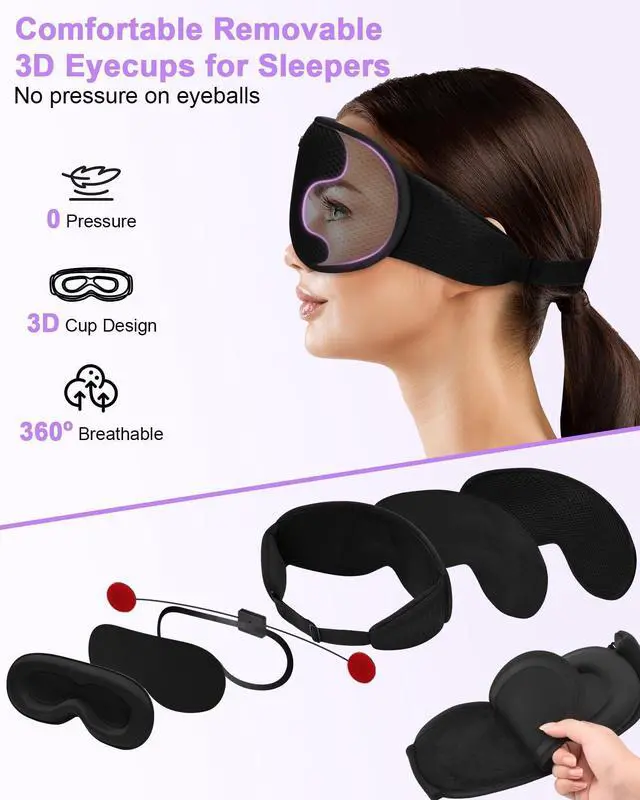 Premium Quality Fabric & 1S Disassembly- ZRUHIG sleep eye mask is made of high quality, soft, skin-friendly material that is comfortable even for sensitive skin. Its breathable fabric wicks away moisture and helps prevent overheating, keeping users cool and comfortable all night long. And with its unique removable design, the 3D eye socket section can be removed effortlessly. This feature allows for easy cleaning of the fabric, keeping the eyecup fresh and clean