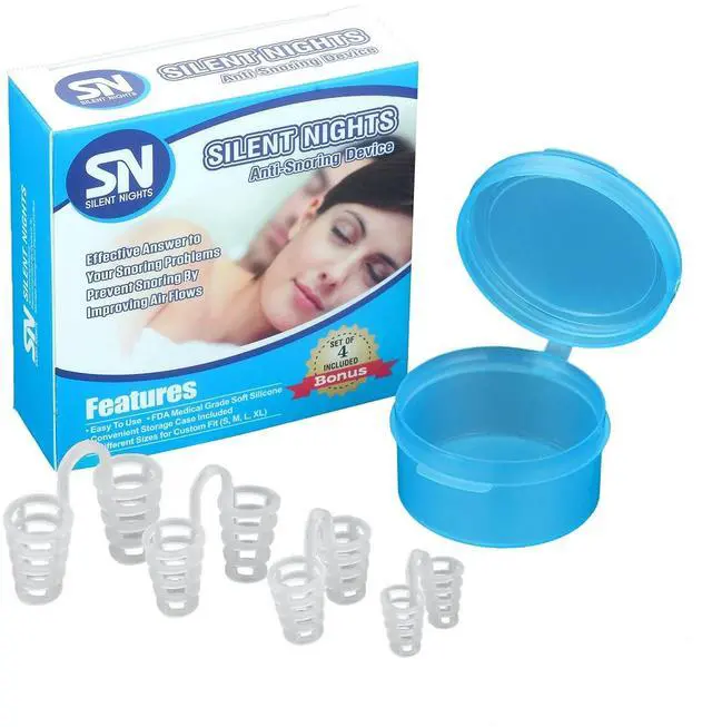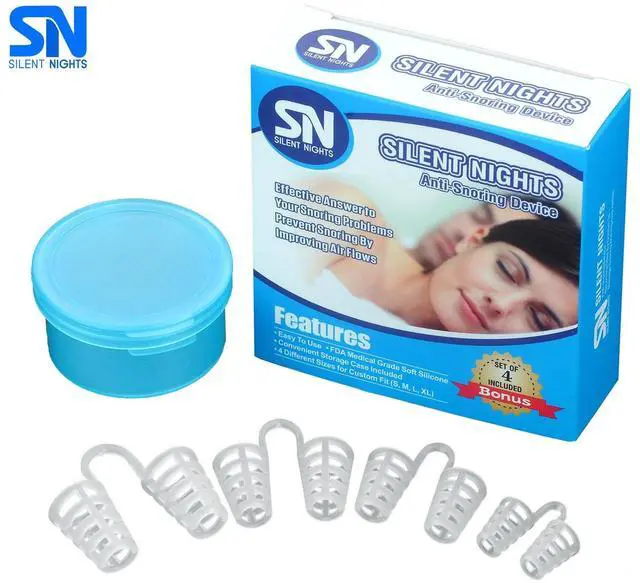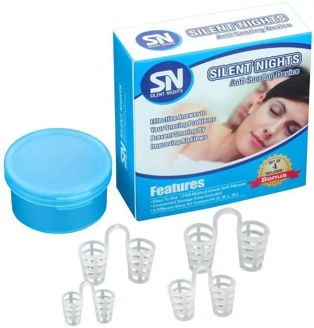 The most efficient resolution to snoring problem is a Silent Nights device. Reason of snoring is a narrowing of nasal passages during sleep. "Silent Nights" nose vents have been scientifically designed to expand and strengthen your nostrils in order to enhance the air flow to your lungs. Silent Nights nose vents is a comfortable and easy anti snoring solution. It provides aid to people who suffer with sleep disorders. This device has an advantage over other similar devices due to its unique design. While other Nasal Dilators have solid walls, our Silent Nights vents have little slits which allow nasal hairs to get through and provide the functionality nasal hairs meant to deliver, and that is filter the air naturally. Silent Nights nose vents is the best and most economical device on the market today. Use anti snoring nose devices to stop snore easily.