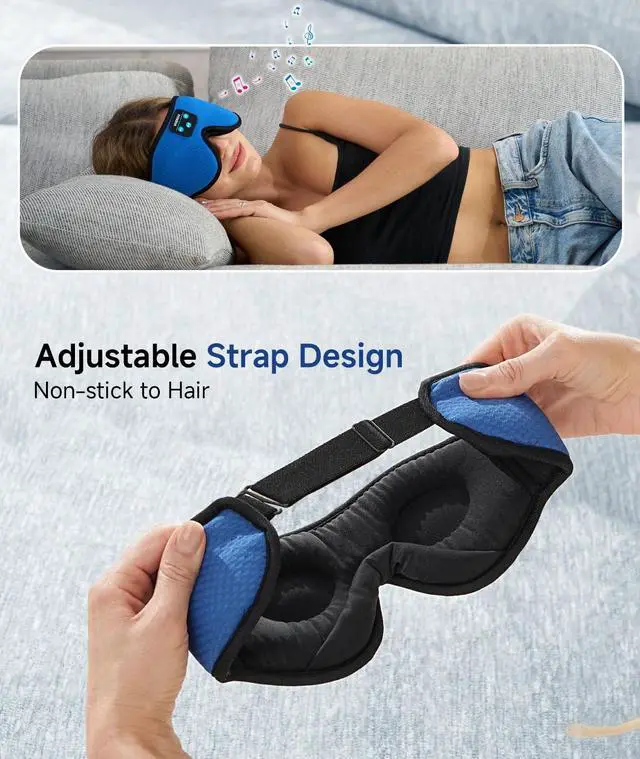 [HD Stereo Sound and Long Battery Life] The bluetooth sleeping mask equipped with ultra-thin, high-quality stereo speakers that wont create discomfort when lying on your side. Enjoy crisp, clear sound without the bulk. The Sleeping headphones Bluetooth sleep mask headphones equipped with a rechargeable battery that offers up to 10-12 hours of continuous playtime on a single charge, perfect for overnight use paring speed, less power consuming