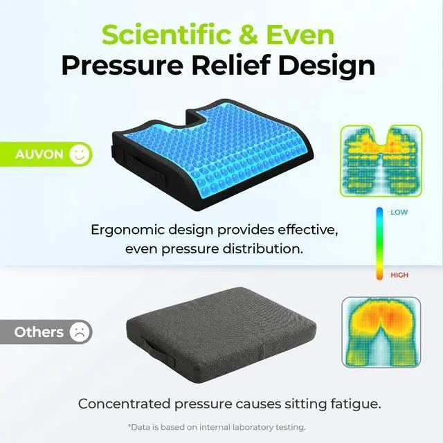 Sitting too long can cause pressure, heat, and discomfort across your lower back, hips, thighs, and tailbone. This wheelchair cushion helps relieve pressure, improve support, and keep you cool, so you can stay comfortable throughout the day.