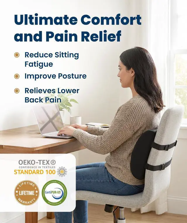PROMOTES BETTER POSTURE AND BACK SUPPORT: Our lumbar support pillow is designed to encourage better posture and provide reliable support while sitting. The contoured shape follows the spines curve to reduce slouching and fatigue during long hours at the desk, on a car ride, or while gaming. A versatile back support for office chair setups, couches, and recliners, this cushion is also an excellent lumbar support pillow for car rides and commuting comfort