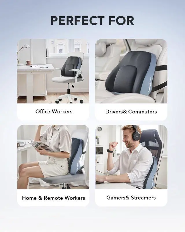 Long hours of sitting can lead to discomfort, poor posture, and back pain, whether you’re working at your desk, driving, or relaxing at home. HUANUO lumbar support pillow comes in – designed to relieve pressure, improve posture, and bring comfort to your sitting experience.
