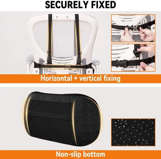 Firmly fixedThe back support for office chair is secured horizontally and vertically with straps to keep it firmly in place.