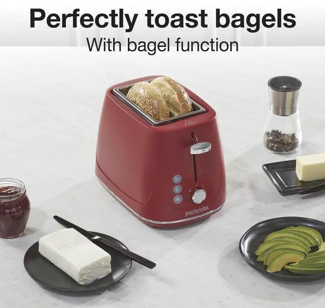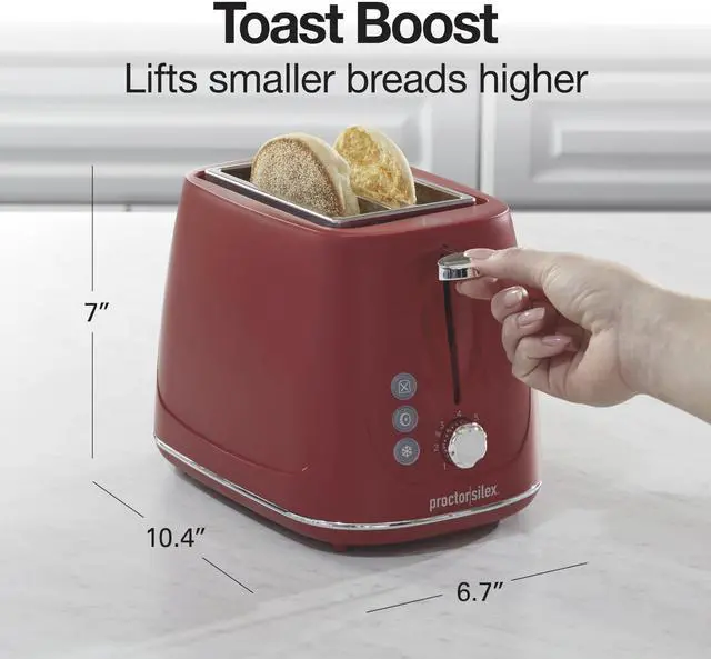 The Proctor Silex Plastic 2 Slice Toaster has extra-wide slots to easily toast a variety of breads, from thick bagels and artisan breads to English muffins, waffles and more.