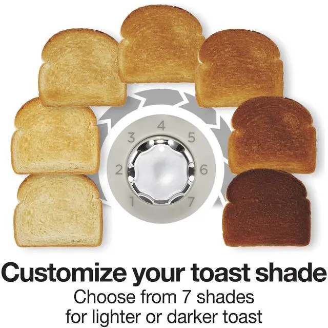 Enjoy your toast just the way you like it. Choose from 7 toast shades for lighter or darker toast by turning the shade selector.