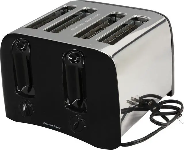 Proctor Silex 24608Y Chrome & Black 4-Slice Cool-Wall Toaster