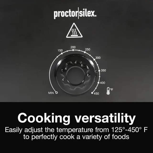 - Easily adjust the temperature from 125 to 450° F with one simple knob to cook a variety of foods