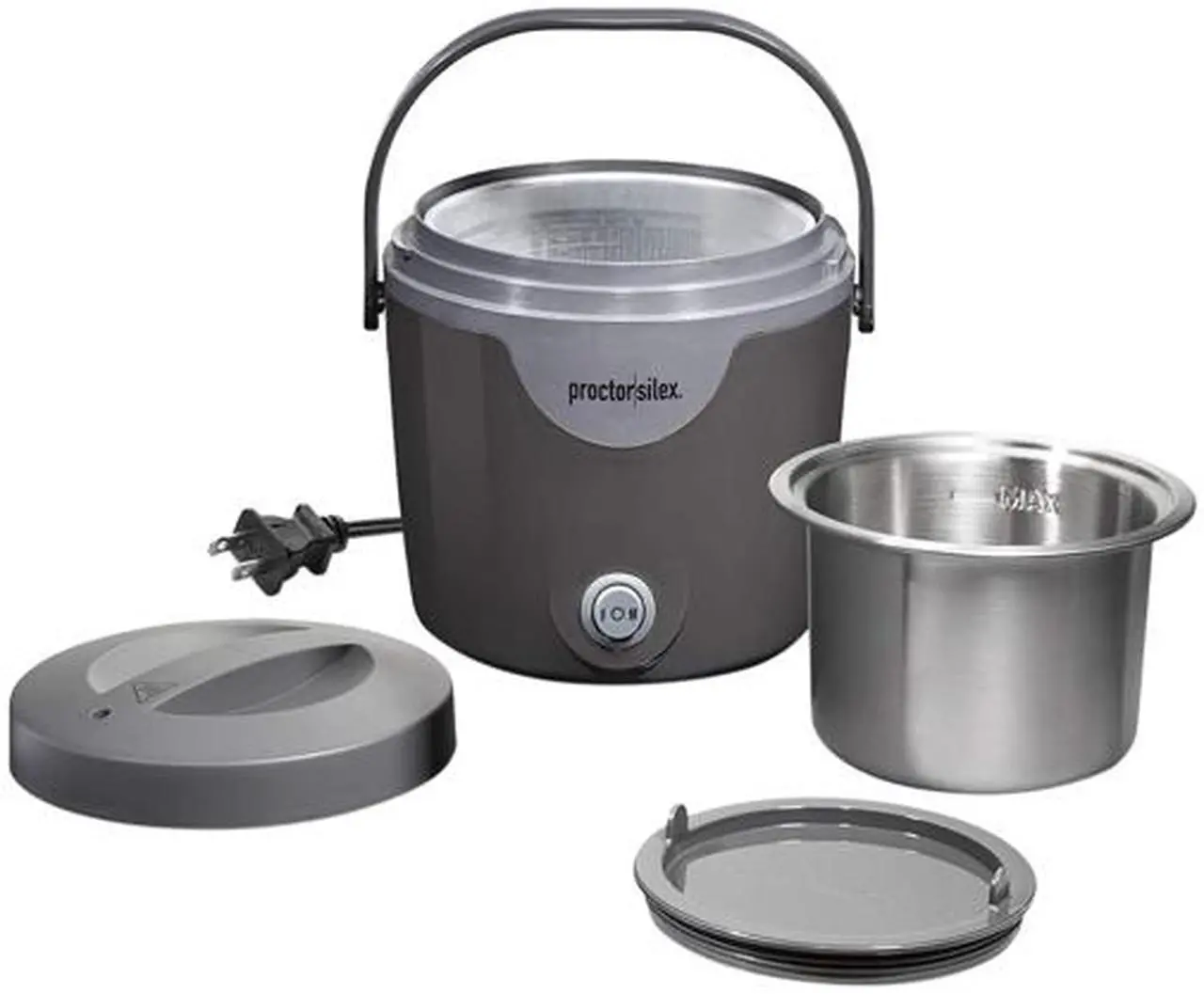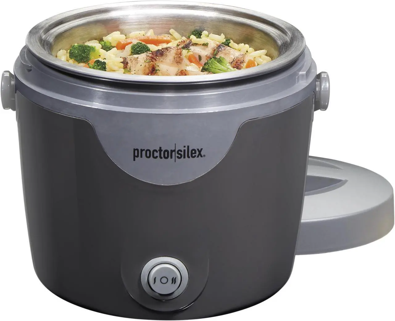 | Feature | Easily carry, reheat, and cook meals on the go with the Proctor Silex Portable Meal Warmer. It's a lunch box and slow cooker all rolled into one. It's great for leftovers, soups, chili, pasta, mac and cheese, and more. Why settle for a cold sandwich for lunch, when you can have a hearty, hot meal. Quickly move food from the fridge to the meal warmer in one pot. The inner pot and lid are removable and perfect for storing leftovers and keeping food fresh in the fridge until you're ready to heat them up. Just insert the pot into the meal warmer, heat, and enjoy! The portable food warmer is versatile with high and low settings and holds 20 oz., the perfect size for lunch or any meal. The built-in carry handle and spill-proof lids make it easy to carry the food warmer to work, the gym, or anywhere. The inner stainless steel pot, inner storage lid, and outer lid are all dishwasher safe for easy cleanup. The meal warmer is also simple to store - the cord conveniently stores on the cord wrap at the base of the meal warmer to keep everything in one place. Enjoy hot, hearty meals on the go Quickly move foods from the fridge to the meal warmer in the same pot The perfect size for lunch Easy to carry with built-in handle and spill-proof lids Versatile with high and low heat settings Easy to clean Simple to store with cord storage |