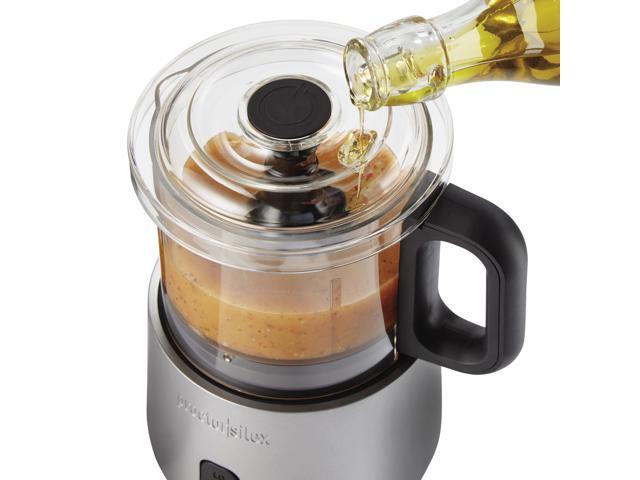 The durable stainless steel chopping blades provide fast, reliable results, and the 3.5 cup bowl has a sealed bottom to prevent messy leaks. The bowl's pour spout and handle make it easy to pour ingredients after processing.