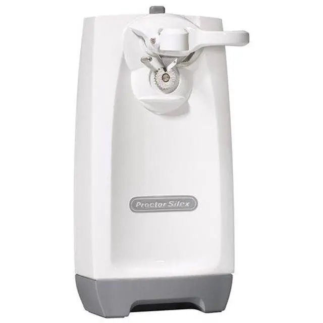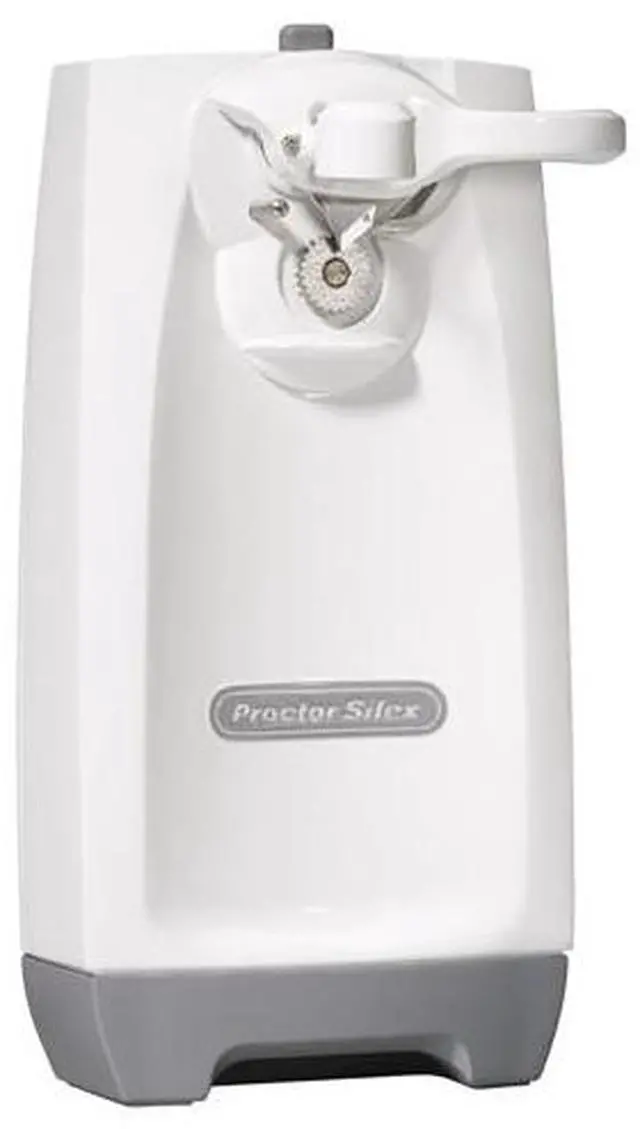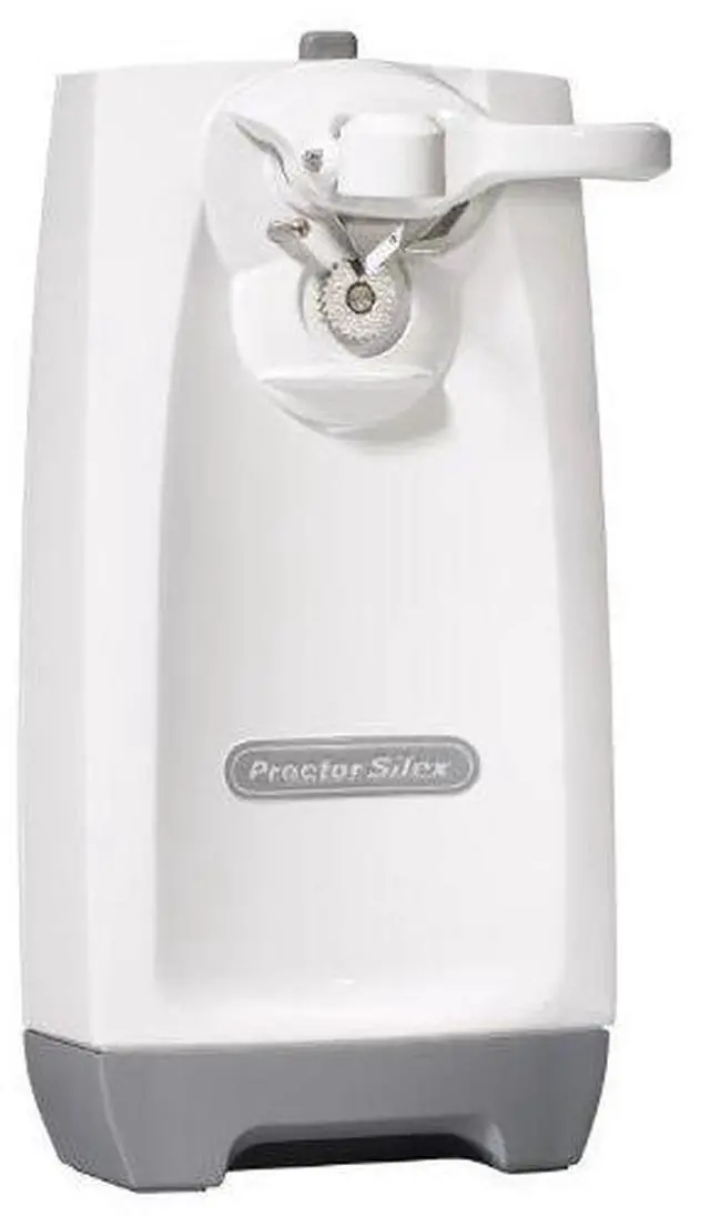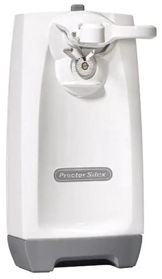 From proctor-silex , the extra tall surecut can opener opens cans on the first try with its patented technology. It features an easy to clean, detachable cutting lever, knife sharpener and automatic shutoff. .