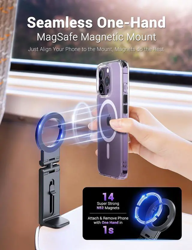 Super Strong Magnetic Alignment and AttachmentWith 14 big and thick powerful rare-earth N52 magnets inside, this magnetic mount easily and securely holds your phone, no worrying of dropping your phone
