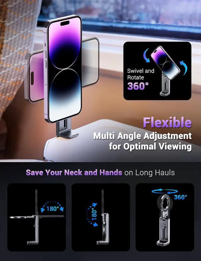 Plane Travel Essential & Hands-free ConvenienceAre you tired of holding your phone for hours while traveling? Take this gadget and you will love the convenience of being able to watch videos on your phone hands free, it keeps your phone within reach and in sight, whether you're on a plane, at your desk, or working out at the gym