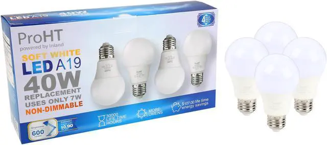 The ProHT 88163 non-dimmable LED bulb gives off as much light as a 40W incandescent bulb - up to 600 lumens - with only 8W power consumption. The soft white light is omni-directional. No matter where you sit in your room, you can enjoy bright light. The light is also easy on your eyes because the bulb does not deliver ultraviolet radiation. Without lead or mercury, the ProHT 88163 LED bulb lets you better protect the environment. Up to 30,000 lifetime hours let the bulb serve you longer. It is sold in packs of four.