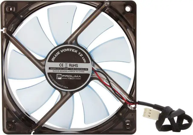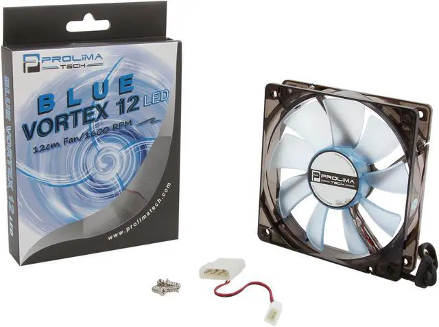 Best Noise-Performance RatioBlue Vortex 12 LED delivers up to 72.67 CFM airflow at a low noise level of 29.1 dBA. It is specifically designed to work with Prolimatech coolers for best performance to noise ratio.