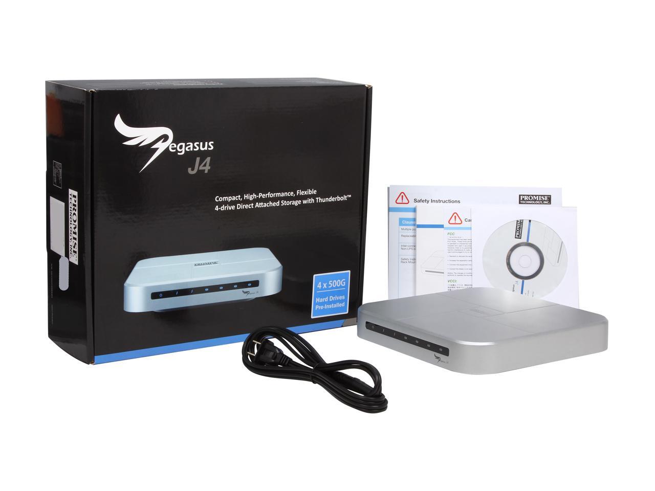 PROMISE Pegasus J4 J4HD2TBUS RAID 0/1, JBOD 2 x Thunderbolt Port Thunderbolt Enabled Storage - 2TB (4 x 500GB)
