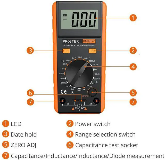 Range:2000uF;Accuracy:±(5%+5);Resolution;1uF