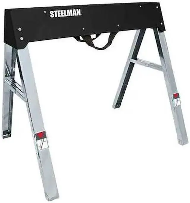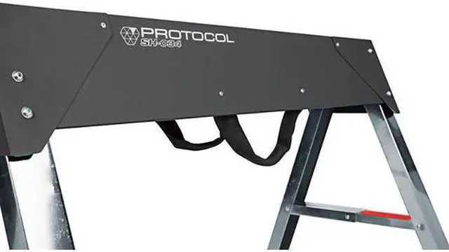 The Protocol Sawhorse is a sturdy work stand that will not let you down. The steel body and legs are made to last, while the plated material support pegs ensure proper grip. Featuring a wet spray air dry finish, this saw horse is corrosion resistant. Its polyester carry handle allows for easy transportation. With its folding legs, this tool saves space when it is not in use. It has capped feet to protect your flooring from scratches and scuffs. The Protocol Folding Saw Horse will keep you working efficiently without any hassle or worry about safety issues.
