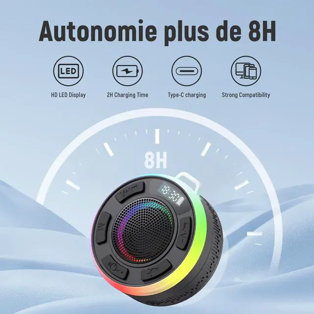Fully IPX7 Waterproof: Don't worry about splashes, steam, or even complete submersion! With a robust IPX7 rating, this shower speaker can handle a direct shower spray or an accidental drop in water. Enjoy your favorite podcasts or playlists with a worry-free, truly immersive shower experience. S3 Bluetooth speaker make your bath time sublime!