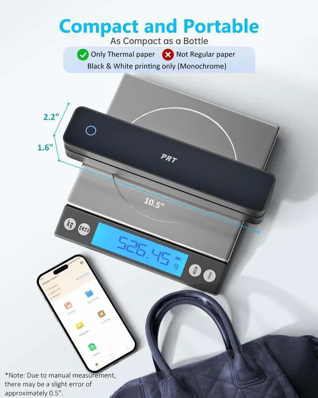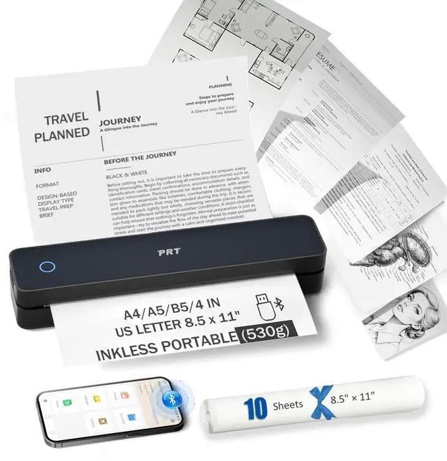 PRT MT610 Portable Printer Wireless for Travel Bluetooth Inkless Thermal Printer