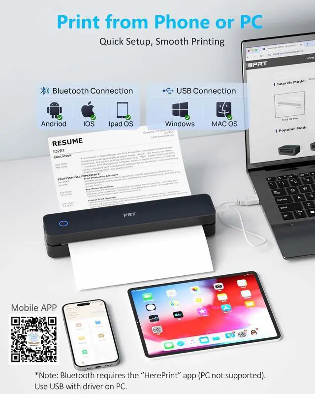 Please Note:Desktop and laptop computers do not support wireless Bluetooth printing. USB connection is required.
