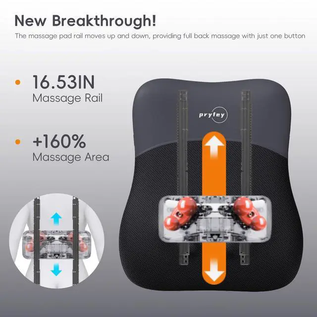 Engineered for deep relief, Pryfey’s ultra-slim (0.75") back massager revolutionizes therapy with dual-track heads that glide vertically, covering 160% more area. Customize sessions via 6 intensity levels, 3 modes (knead/tap/combo), 3 adjustable heat settings, and timers (10/15/20min). Trusted by wellness enthusiasts worldwide, Pryfey blends innovation with reliability—transforming every use into a spa-grade recovery.