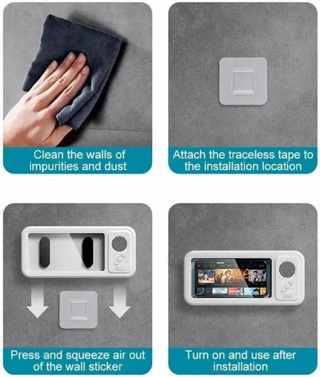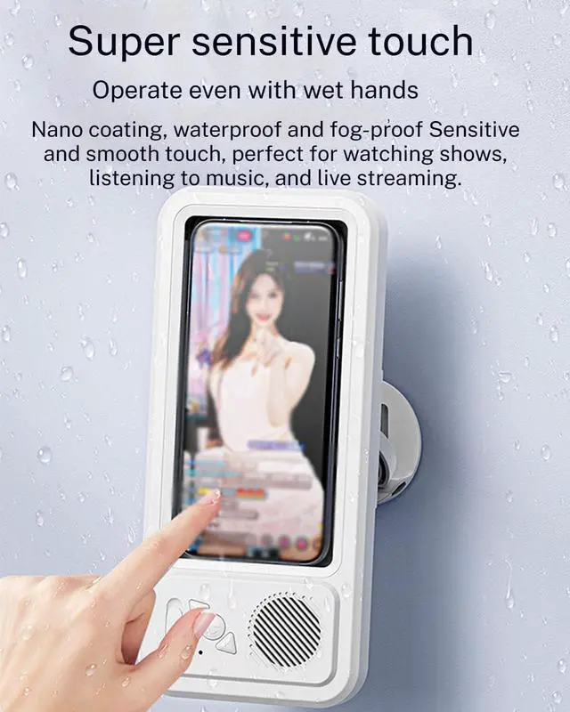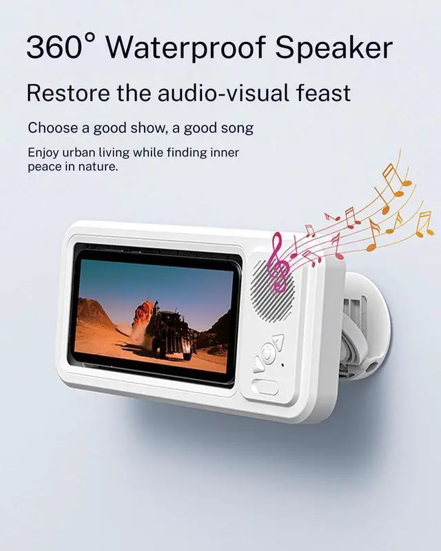 --New 2025 Upgraded Shower Phone Holder Waterproof with Wireless Bluetooth Speaker