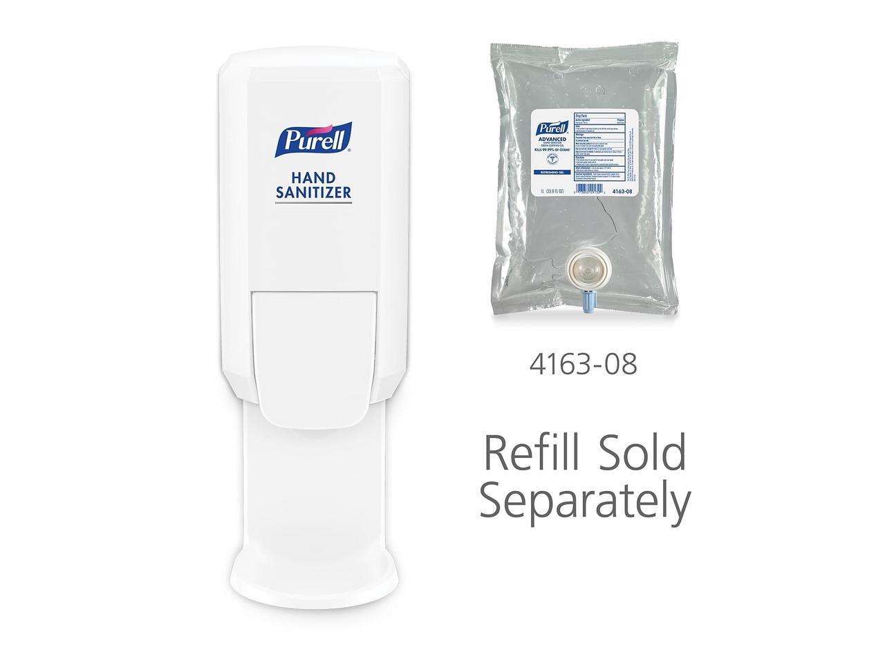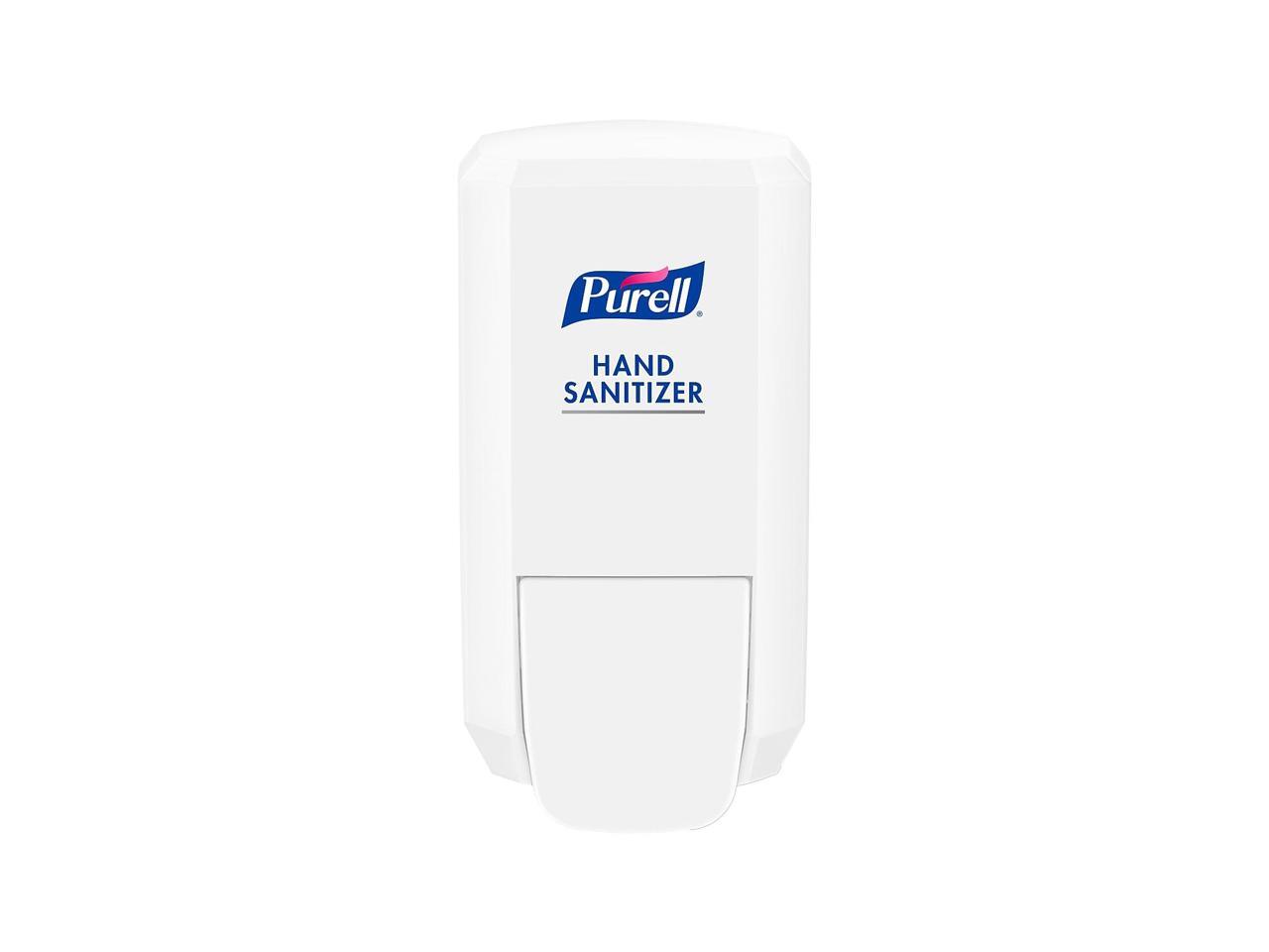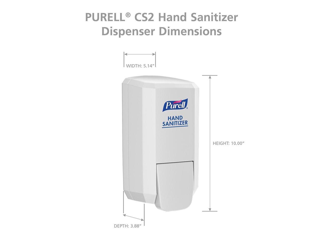 - Compatible with 1000 mL refills and integrates hand hygiene throughout buildings, including placement in lobbies, hallways, breakrooms, offices, and more. Case includes: 1 - PURELL CS2 Push-Style Hand Sanitizer Dispensers, White. Includes adhesive tape.