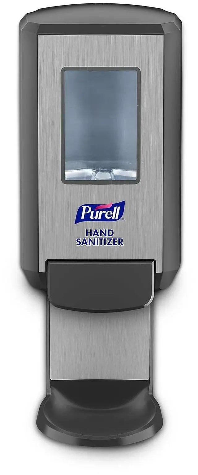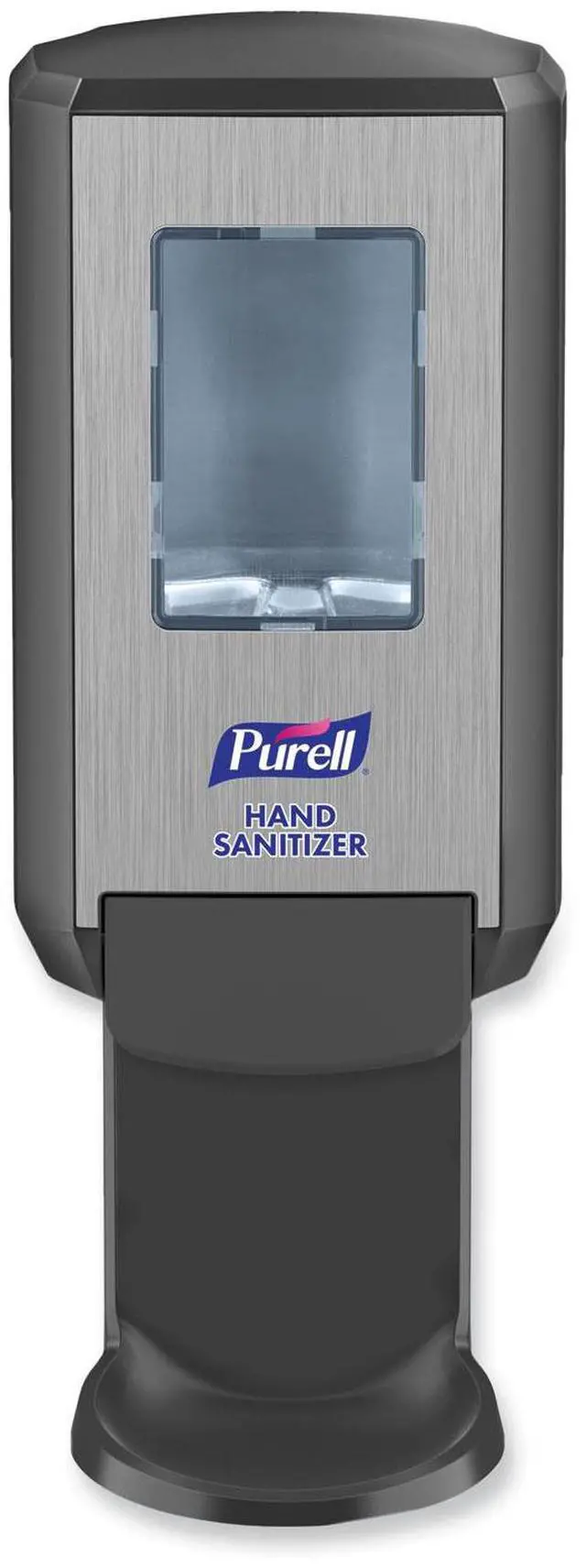 his dispenser ensures hand hygiene is available where its needed most and is perfectinhigh-traffic areas. The CS4 dispenser makes maintenance easy, with a large sight window that makes it simple to check refill level. LOCK OR NOT technology allows you to convert dispenser into a locking system. Its ADA compliant and comes with guaranteed reliability. Uses PURELL CS4 1200 mL Hand Sanitizer refills (sold separately, SKU 5192-04 and 5191-04). Mounts to wall with adhesive tape (included) or optional mounting screws (not included). Multiple hole pattern allows use of existing wall holes. Case Includes:1PURELLCS4Push-StyleHand Sanitizer Dispenser, graphite. GOJO Industries, a purpose-driven Family Enterprise, inventedPURELL hand sanitizerin1988.Our team is committed to using the best science available to make the world a better place.