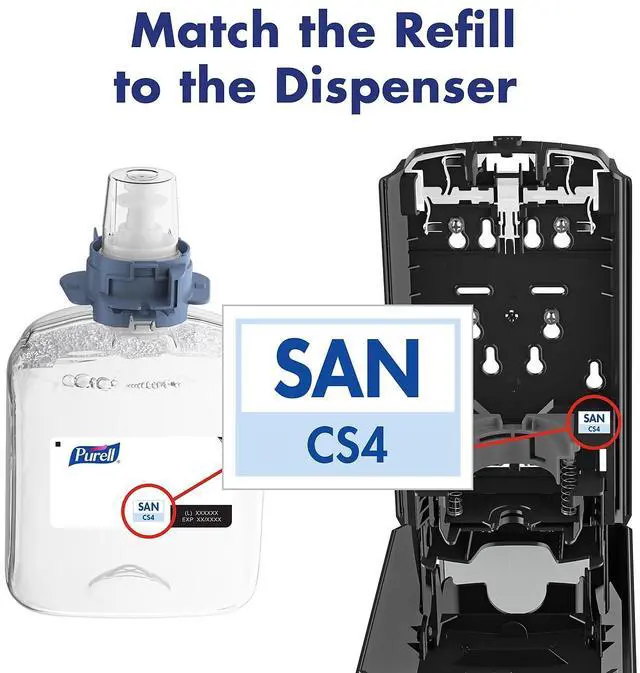 - Uses PURELL CS4 1200 mL Hand Sanitizer refills (sold separately, SKU 5192-04 and 5191-04); large-sized refills make this dispenser ideal for high-traffic areas.