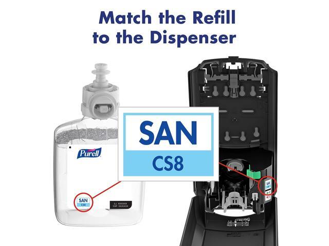 - PURELL CS8 dispensers pair with PURELL Advanced Hand Sanitizer Refills (sold separately) to exceed FDA healthcare personnel handwash requirements with just 1.1 milliliter of product1.