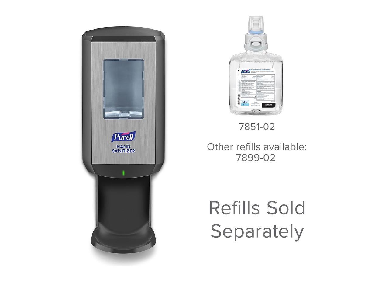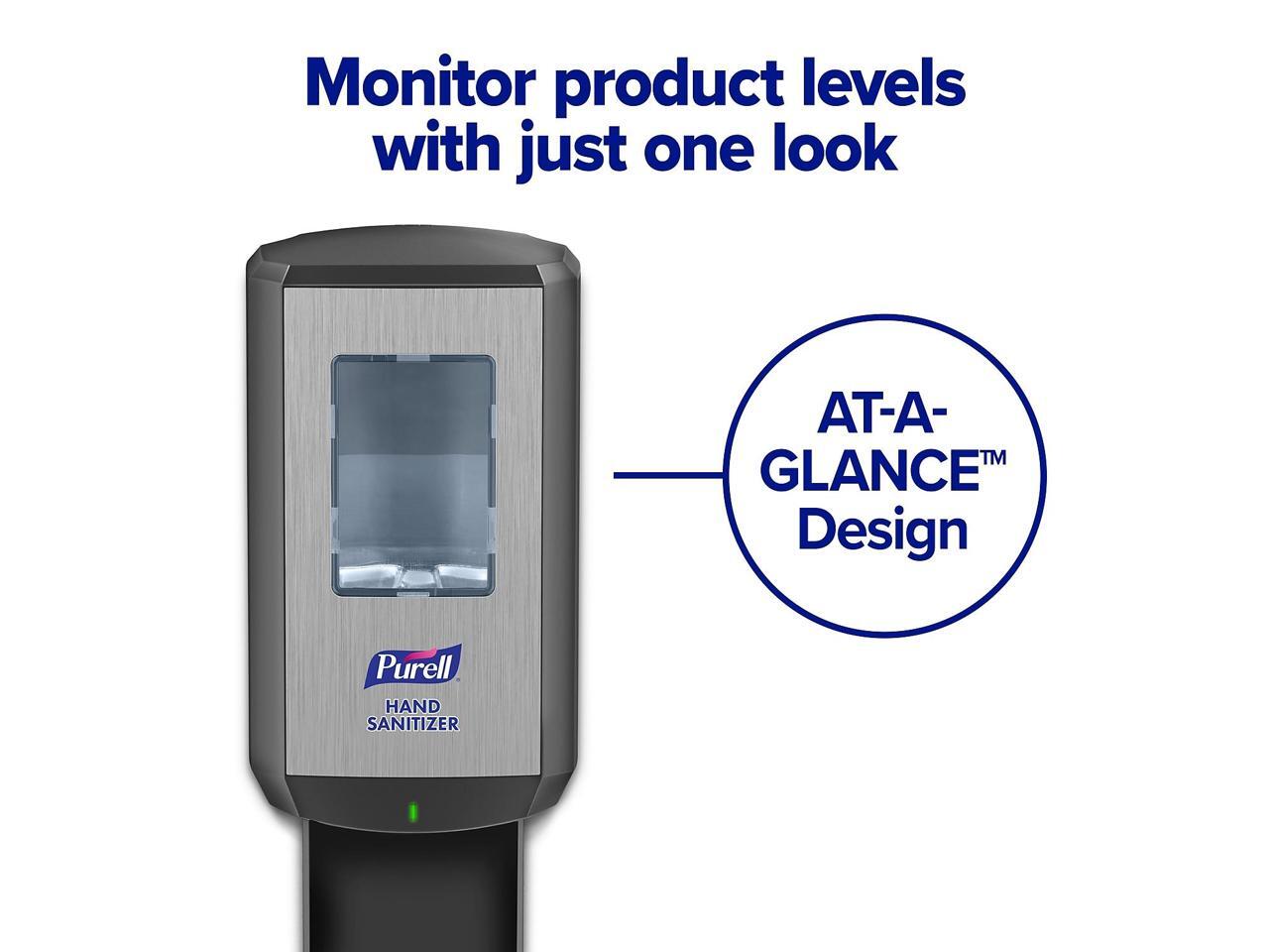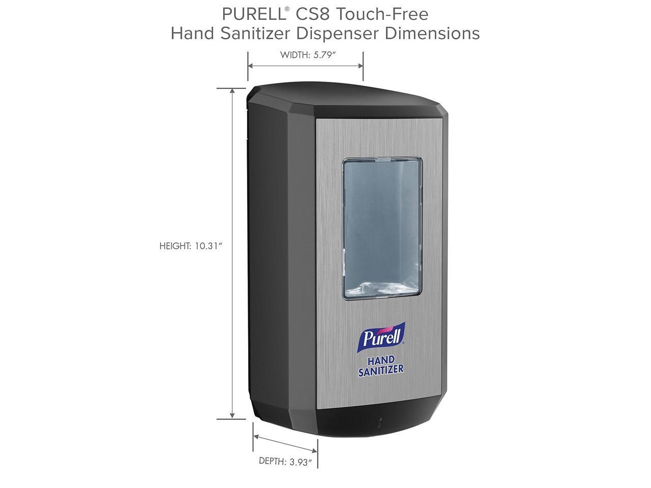- 80% of people said seeing PURELL products left them with a positive impression of the business, so promote well-being and impress your customers with the PURELL CS8 Automatic Hand Sanitizer Dispenser. Case Includes: 1 PURELL CS8 Automatic Hand Sanitizer Dispenser in Graphite with included adhesive tape to mount to wall (refills sold separately).