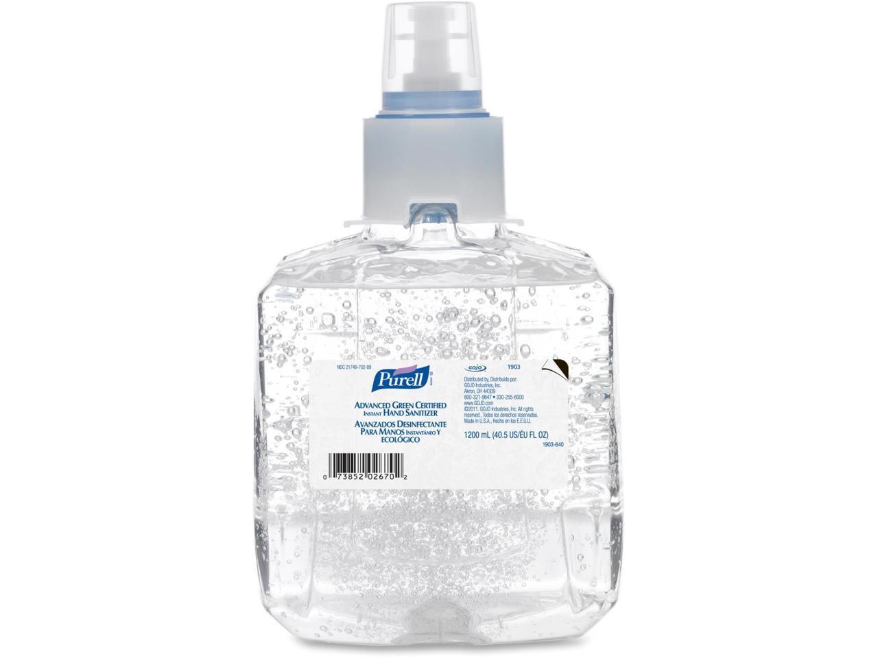 Purell 190302CT Advanced Green Certified Instant Hand Sanitizer Refill, 1200mL, FragranceFree, 2/Carton, 1 Carton