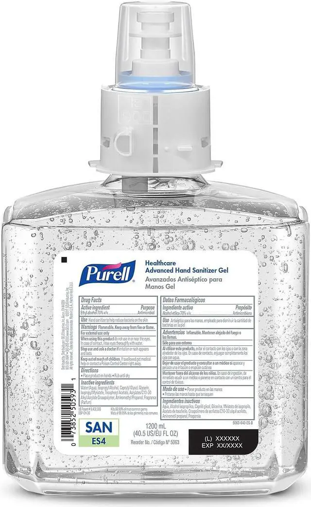 From Americas #1 brand of instant hand sanitizer comes a powerful formulation PURELL Advanced Hand Sanitizer exceeds FDA Healthcare Personnel Handwash requirements with just 1.1 mL of product, or a single pump. PURELL Advanced Hand Sanitizer Gel with clean scent uses only high-quality, dye-free ingredients and is made with nourishing conditioners that are clinically proven to maintain skin health. The transparent refill allows teams to easily monitor hand sanitizer levels with a simple look and each refill is factory-sealed to eliminate contamination. For PURELL ES4 Dispensers. Hand Sanitizers Type: Gel; Color(s): Clear; For Use With: PURELL ES4 Dispensers; Volume Capacity: 1,200 mL.