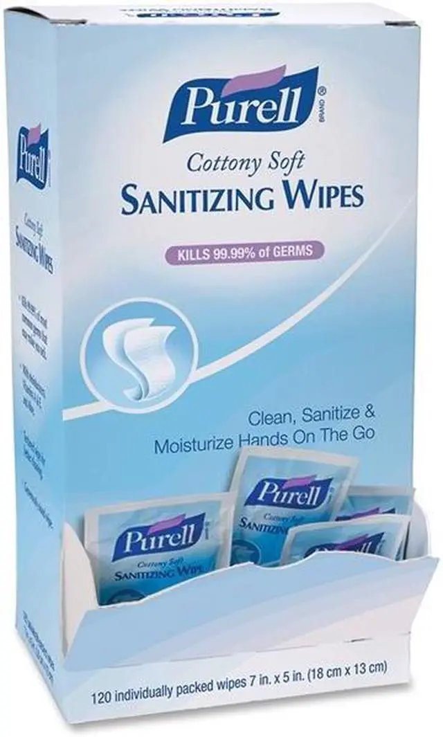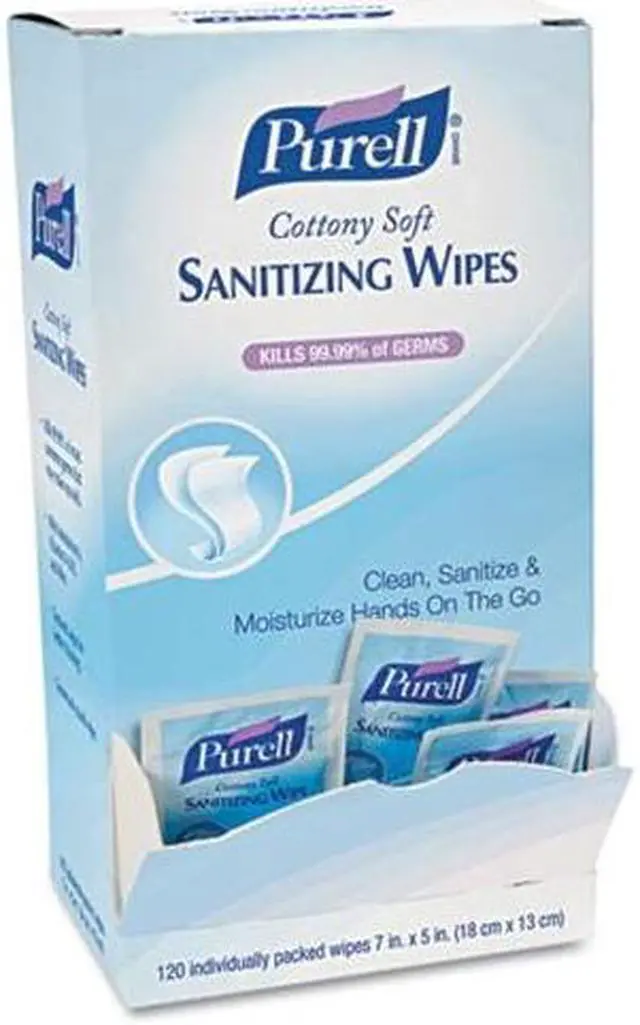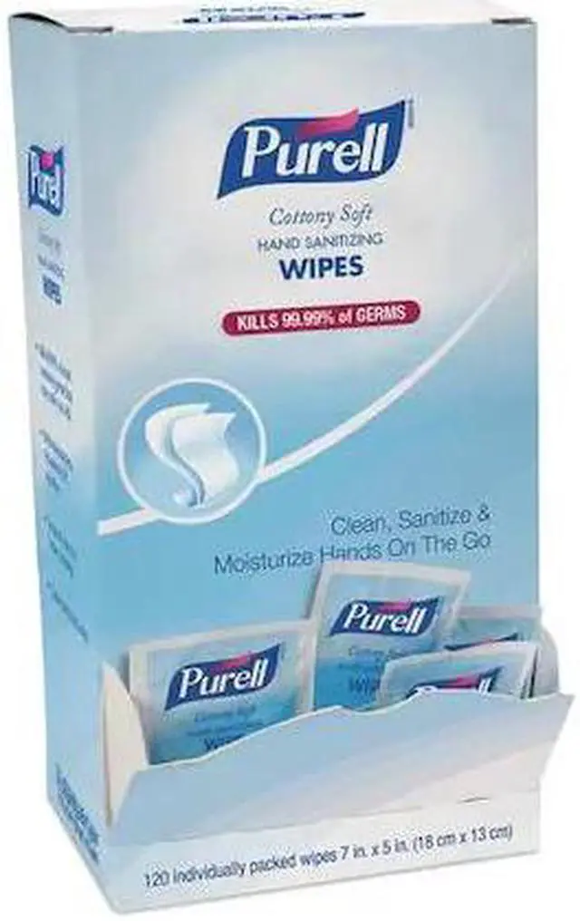 Hand Sanitizer Wipes, Container Type Box, Flushable No, Form Wipes, Formula 62 Percent Ethyl Alcohol, Fragrance Alcohol, Hygiene Properties None, Series Purell, Standards FDA, Wipe Length 7 in, Wipe Width 5 in, Wipes per Container 120, Material Cotton, Product Type Hand Sanitizer Wipes, Color White, Requires Dispenser No