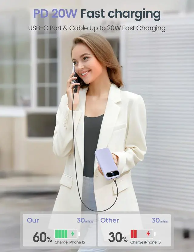 | Special features | Potable charger with AC wall plug,and built in cable,22.5W fast charging, Ultra slim lightweight, pocket size, airplane travel necessities, LED indicator lights, over charging protection, short circuit protection, auto shut-off, scratch resistant |